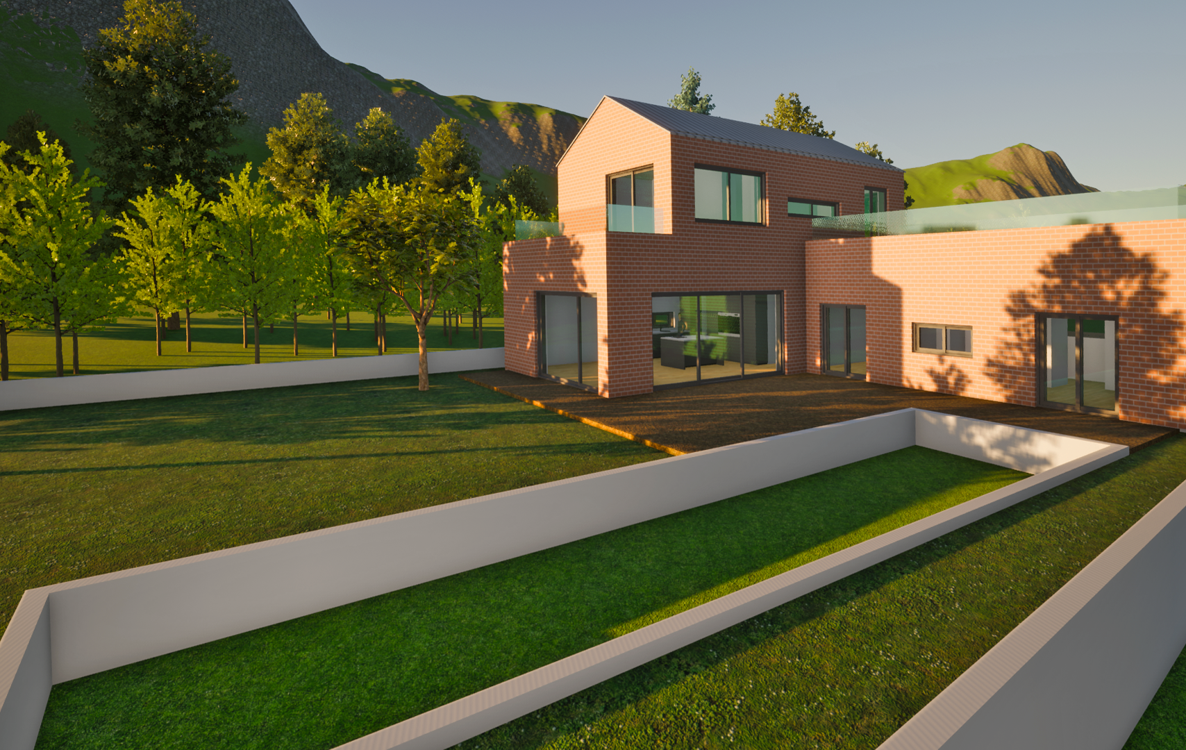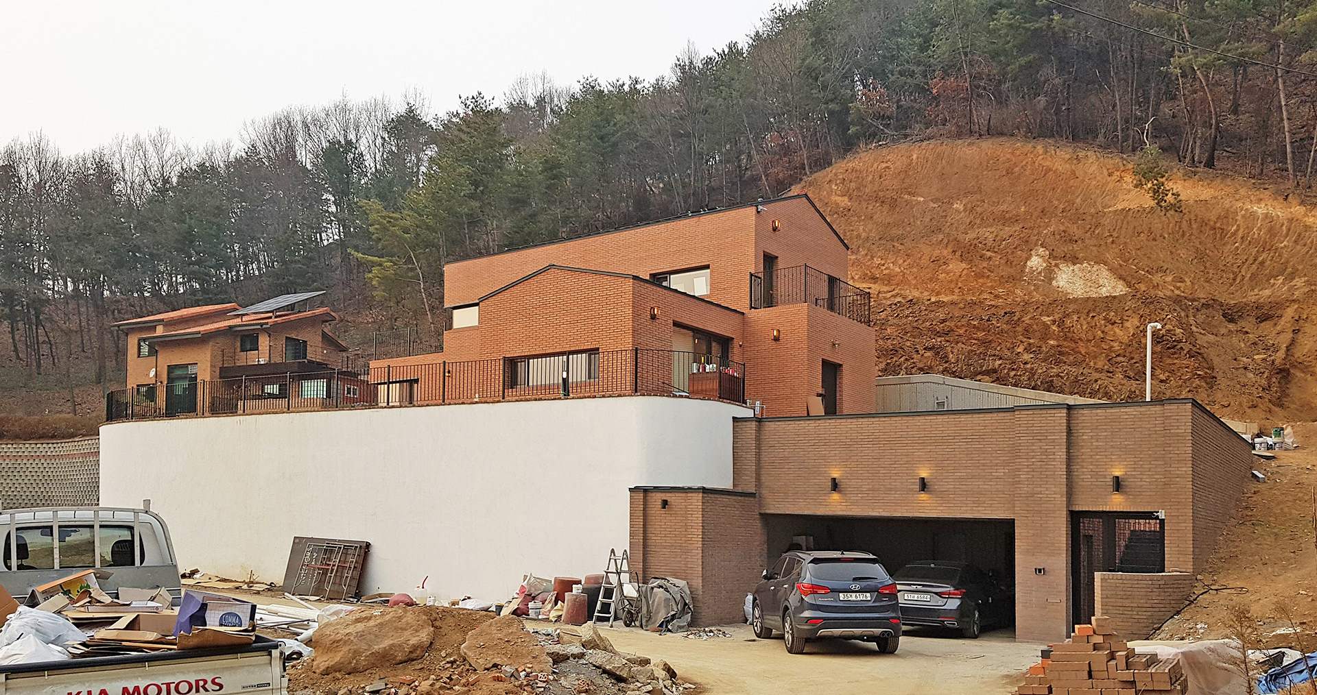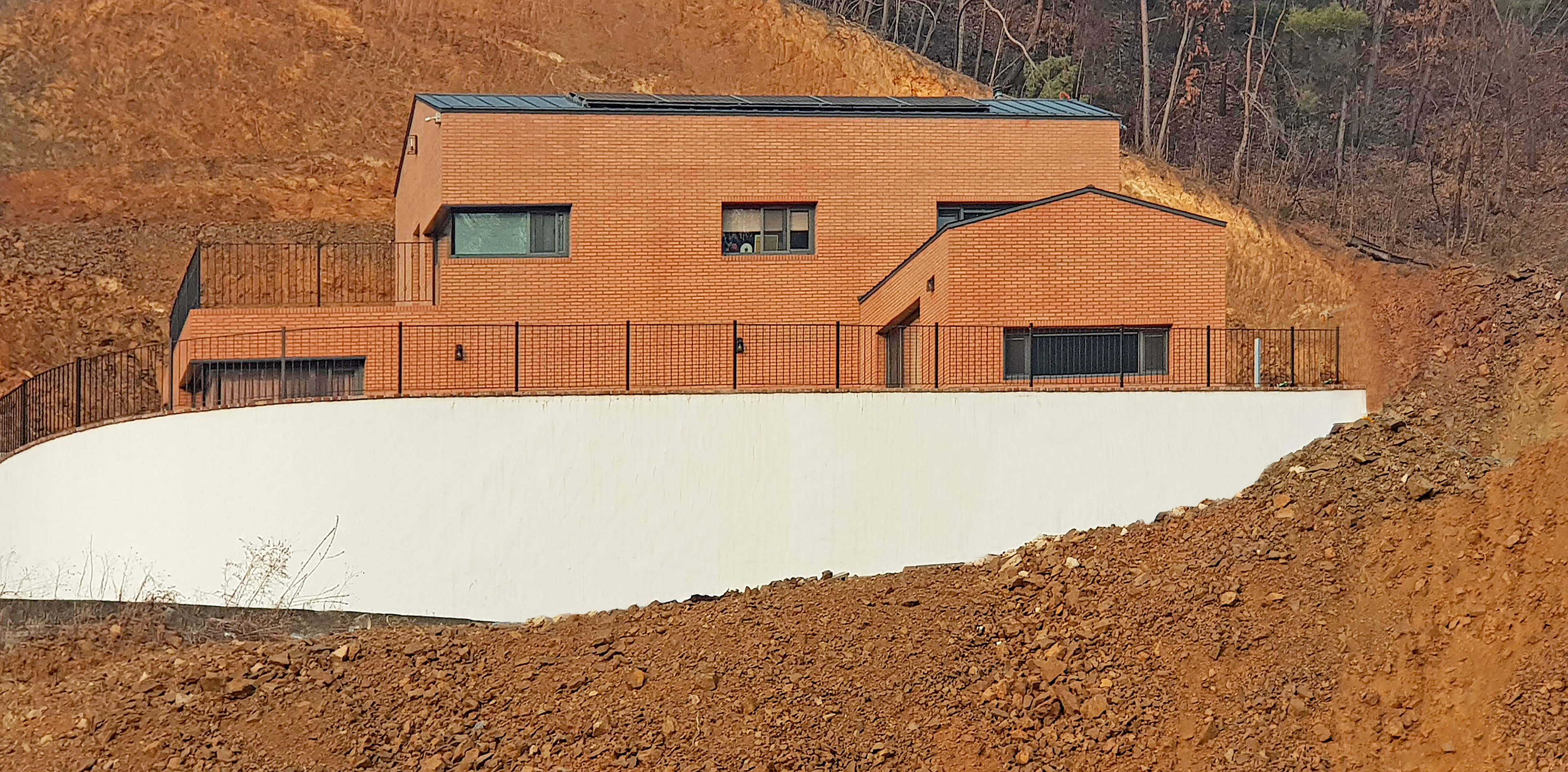 양평에 위치한 단독주택 설계. 고즈넉한 산을 배경으로 동네를 조망하는 위치에 자리한 주택 입니다. 주변 경관과 어우러지는 붉은색 벽돌을 사용하여 자연과 하나되는 질서있는 건축물이 만들어 졌습니다.